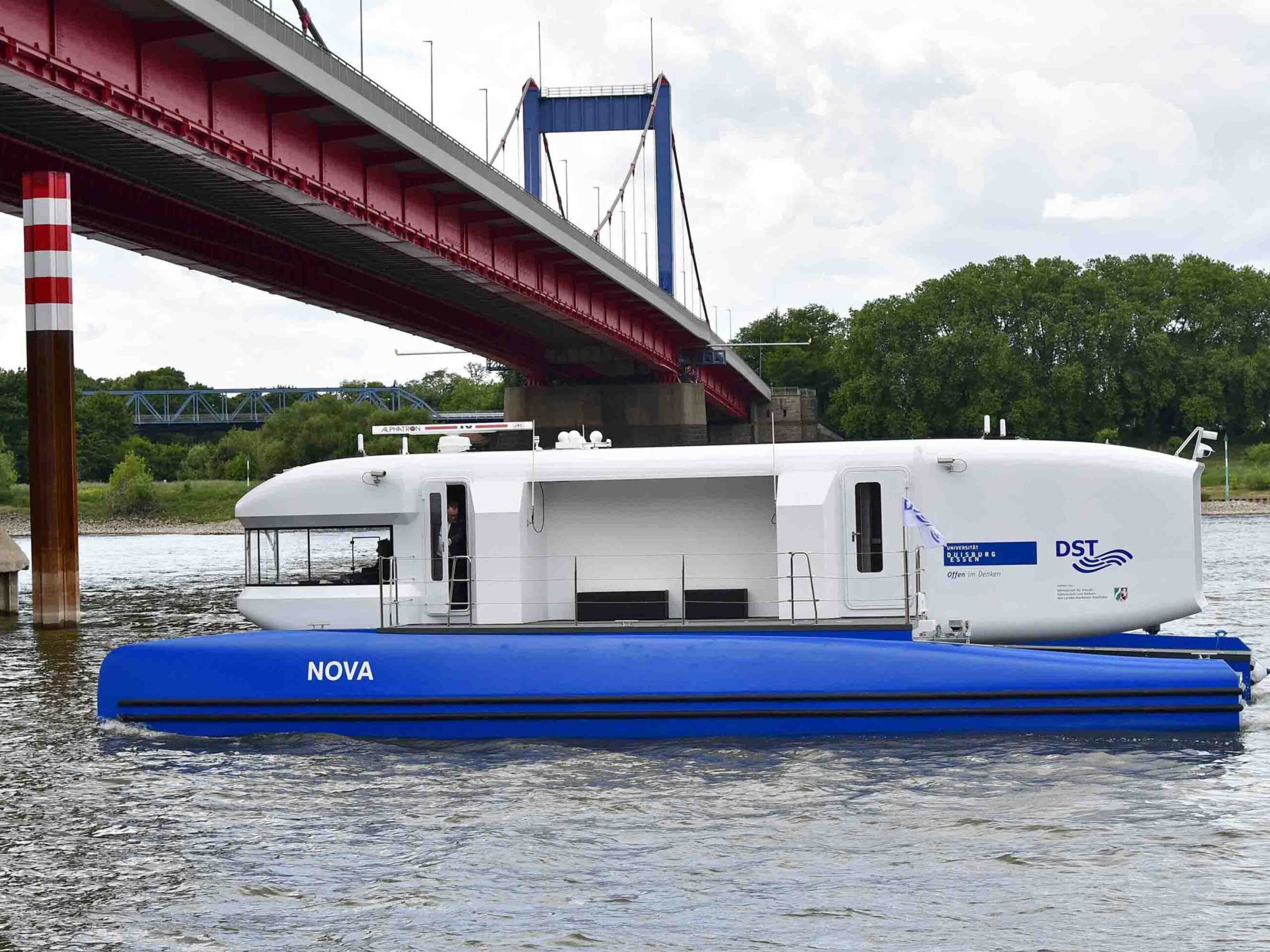 „Wir wollen das automatisierte Fahren von Schiffen unter realen Bedingungen untersuchen – dort, wo es eng, unübersichtlich und voll sein kann“, erklärt Prof. Dr. Bettar el Moctar vom Institut für Nachhaltige und Autonome Maritime Systeme (INAM) der Universität Duisburg-Essen. Im Gegensatz zu Teststrecken ist die Verkehrsdichte in Häfen und insbesondere auf dem Rhein hoch. „Stoppmanöver einleiten, Kurs ändern oder Kurs halten? Entscheidungen wie diese muss die NOVA künftig selbst treffen – auch bei Nebel, Dunkelheit oder hoher Verkehrsdichte.“ Dafür wird der 15 Meter lange Katamaran mit sämtlicher Technik ausgerüstet, die für eine vollständig automatisierte Fahrt nötig ist – einschließlich komplexer Manöver wie Schleusenfahrten.