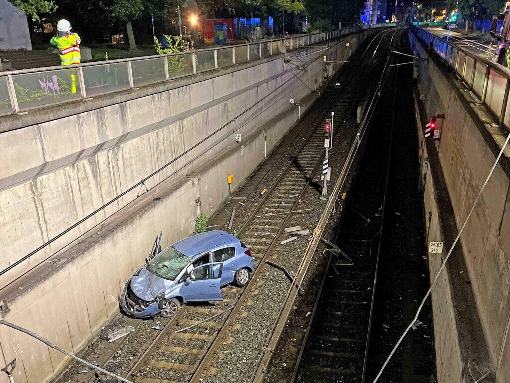 Ein Opel Corsa ist in der Nacht zum Montag (4. August) gegen 2:40 Uhr auf der Heerstraße (Ecke Bungertstraße) rund fünfeinhalb Meter tief in einen U-Bahn-Schacht gestürzt. Nach bisherigem Ermittlungsstand war der Wagen zuvor von der Fahrbahn abgekommen, überfuhr eine Verkehrsinsel samt Begrünung, durchbrach ein Sicherheitsgeländer und landete schließlich auf dem Gleisbett. Anwohner wurden durch einen lauten Knall geweckt und alarmierten die Polizei.